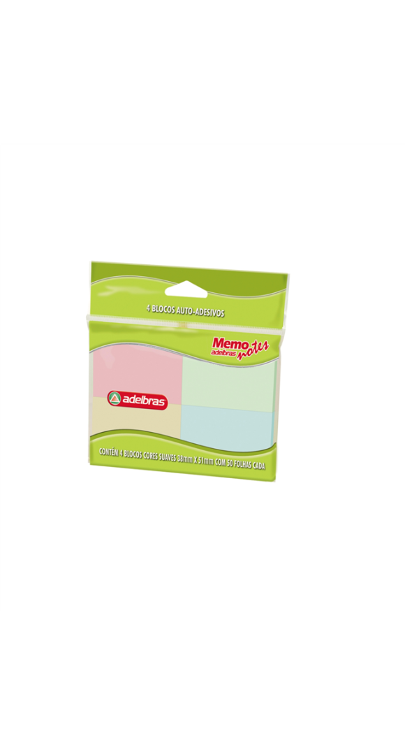 Bloco Adesivo Adelbras Memo Notes 4 Blocos Cores Suaves